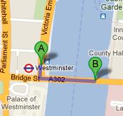 The Westminster tube station is just 4 minutes from Westminster Bridge, as the distance between these two sites is close to 0.2 miles. Therefore, if a person heads south on Victoria Embankment/A3211 towards Bridge Street/A302 after exiting from this London Underground then, turns left onto A302, he or she can reach Westminster Bridge in about 4 minutes on foot. Directions from the Westminster tube station to Westminster Bridge.