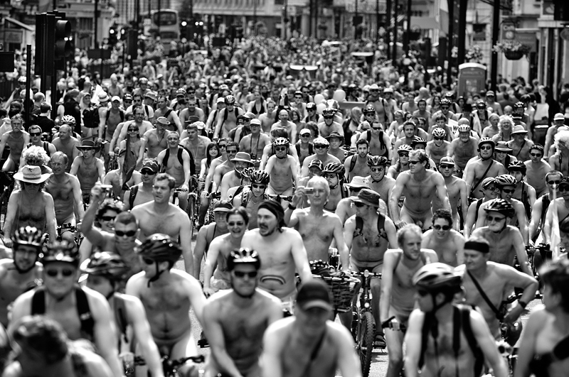 The World Naked Bike Ride is taking place for eight years now, as it was first held in 2004. During the first ever event back about 60 riders took part and rode inside Hyde Park for 30 minutes. It really fascinated the public present at the first event that several cyclists impulsively joined the ride. From there on wards every time the World Naked Bike Ride took place in London it saw a massive increase in number of participants. They touched the 1000 mark in 2007 and 1200 in 2009.