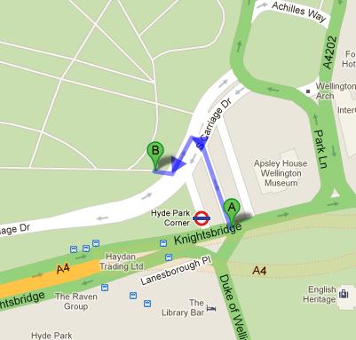 Hyde Park Corner is the nearest tube station to the south-east side of the Hyde Park from where the World Naked Bike Ride will begin and end. From Hyde Park Corner tube station patrons can easily reach Hyde Park in about 2 minutes time period on foot after covering a distance nearly 443 ft. View Map