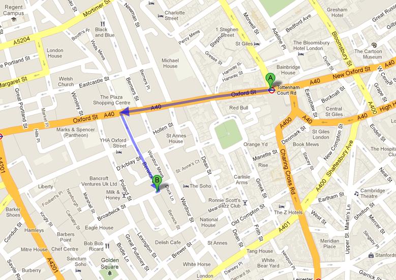 The nearest tube stations are Tottenham court road, Oxford circus and Piccadilly circus tube station. If you are coming from Tottenham court road tube station then move west on Oxford St/A40 towards Hanway St. Turn left onto Berwick St and turn right onto Broadwick St. The restaurant will appear on your left side. View Map